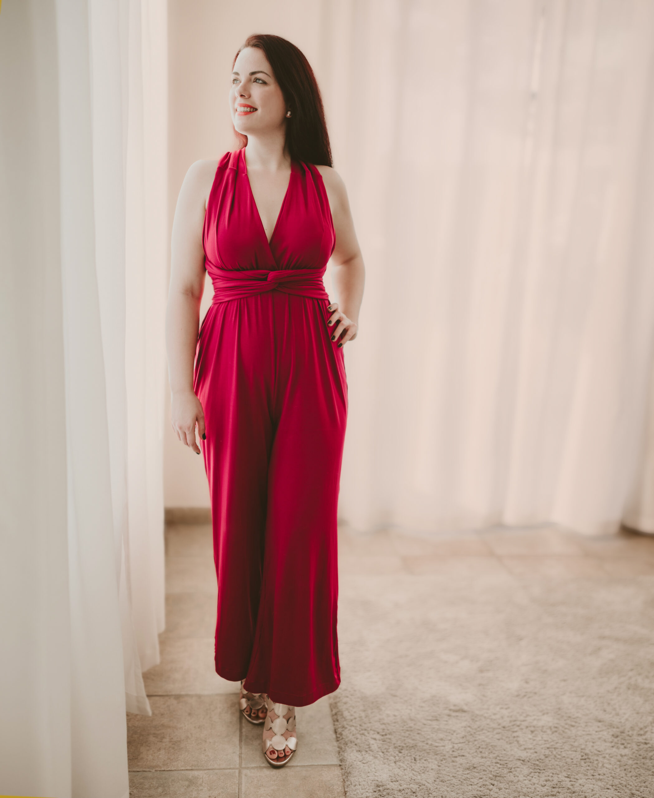 Do you love infinity dresses in summer, but would you like an alternative? Then an infinity jumpsuit is just what you need. We’ll show you how easy it is to sew your new summer companion from our Mars pattern. The best? Thanks to the double-layered top with built-in cups, you can easily wear your jumpsuit without a bra, so that your free back comes into its own.