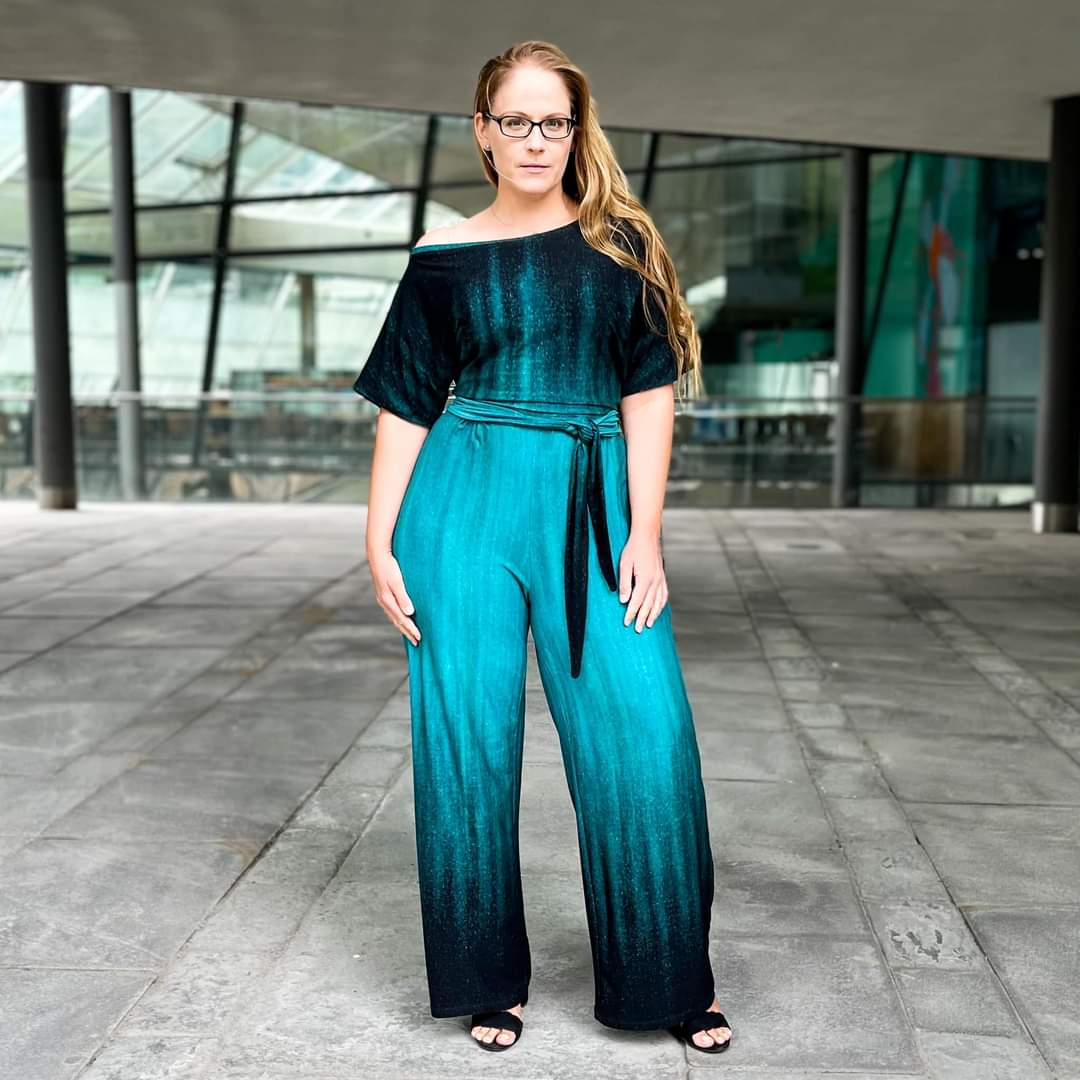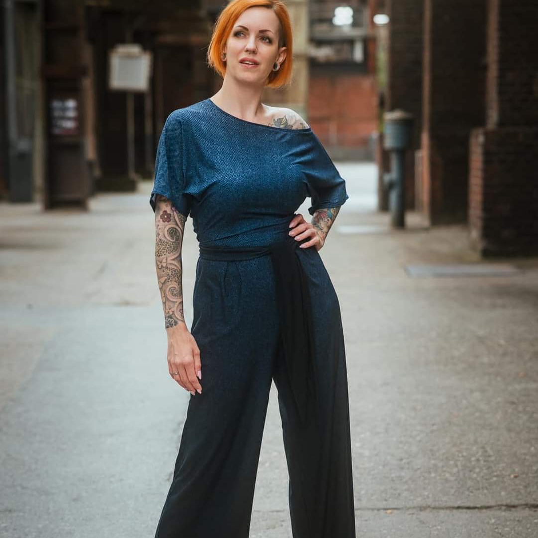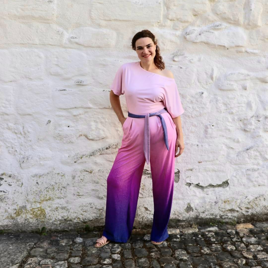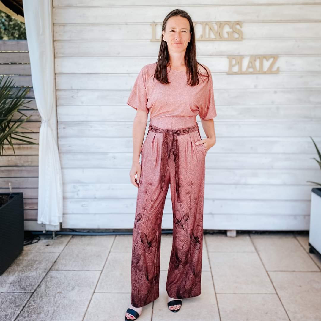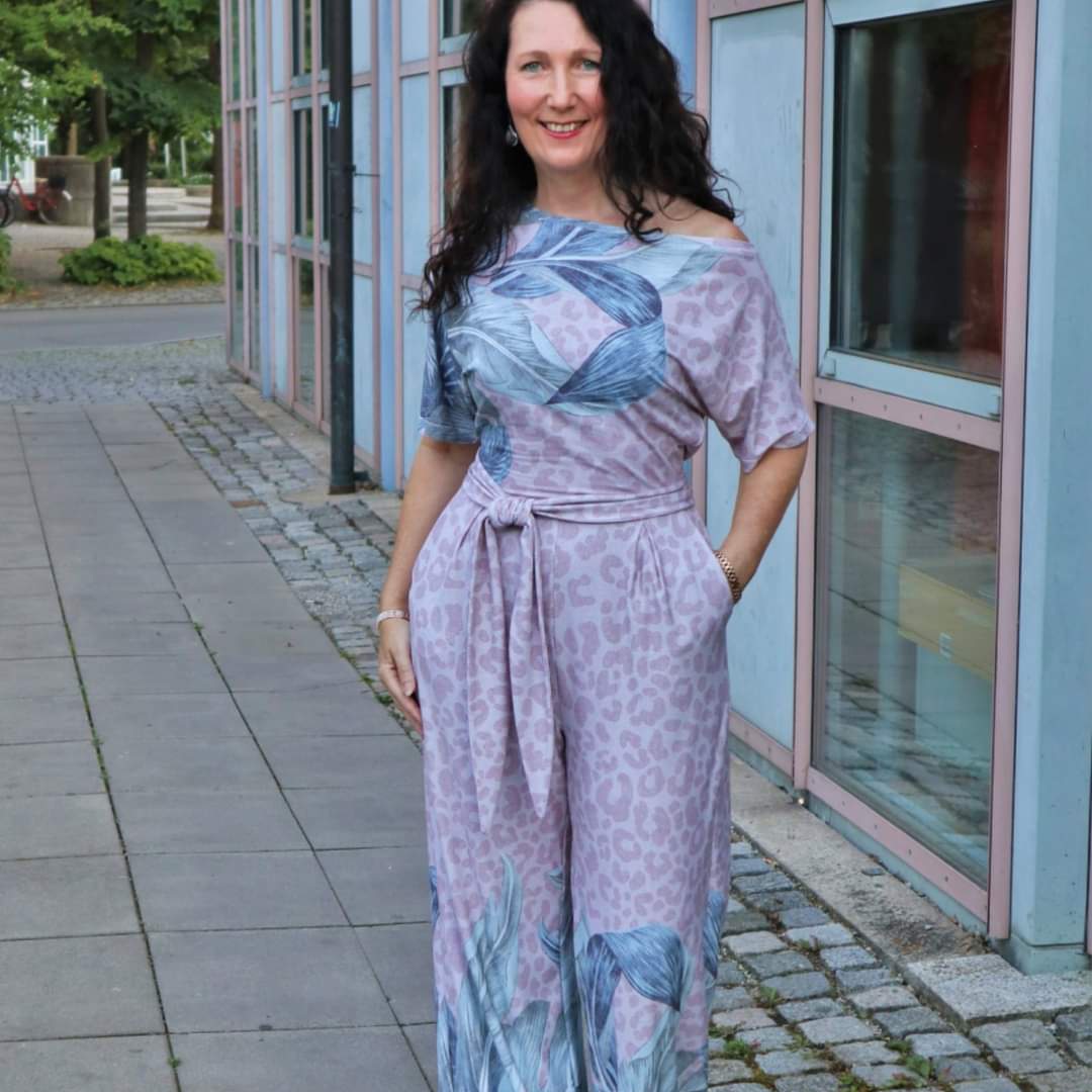 Be sure to sew a sample piece out of a cheap fabric. Jumpsuits are far more forgiving than dresses. Since patterns are always standardized, but no two bodies are the same, an adjustment is often necessary. All three measurements are relevant for this pattern: bust, waist and hips. If the dimensions deviate from each other, it is essential to adjust them. Print only the sizes you need. Be sure to measure your inseam length, because it is extremely important that this distance is long enough for your body and that the pants are the right length in this area. The Mars top ends right at the waist. If you have a rather long torso, lengthen the top downwards.