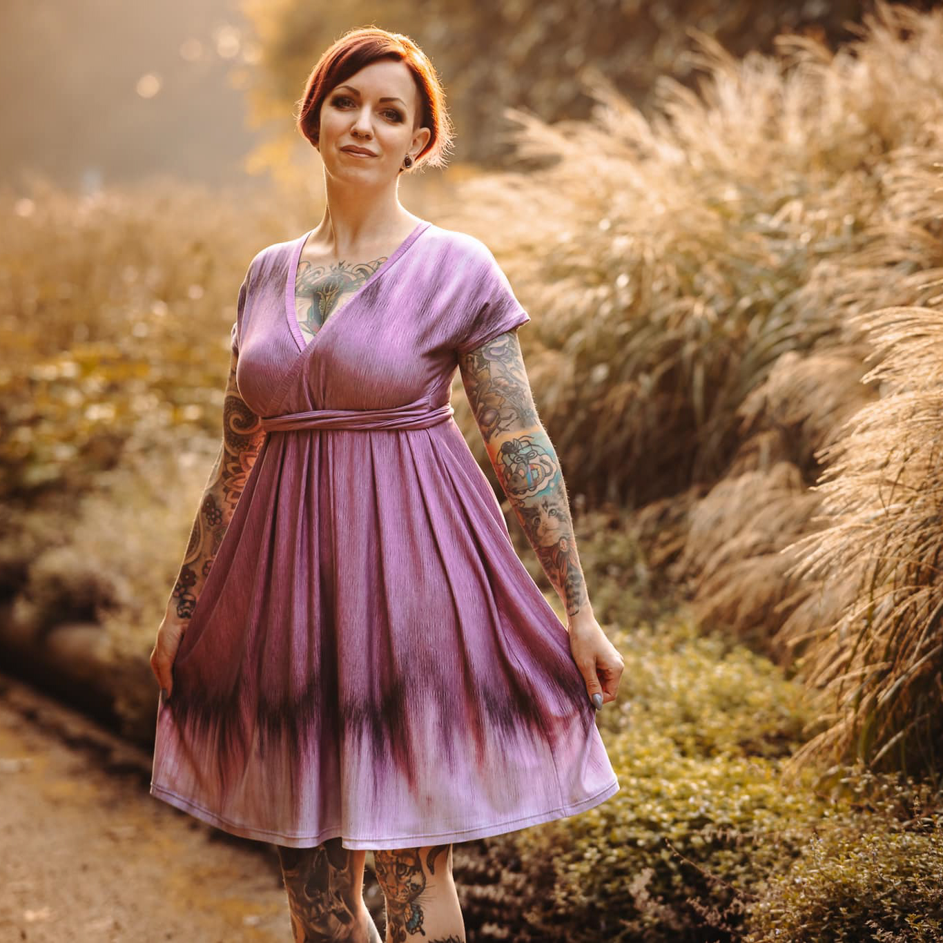 Die Variante mit dem weiten Rock eignet sich perfekt zum kaschieren und trägt sich sehr leger und bequem. An der Brust liegt Hera eng an, wähle daher die Größe anhand deines Brustumfangs aus. Die enge Rockvariante schmiegt sich an Taille und Hüfte figurnah an, sodass hier alle 3 Maße entscheidend sind.