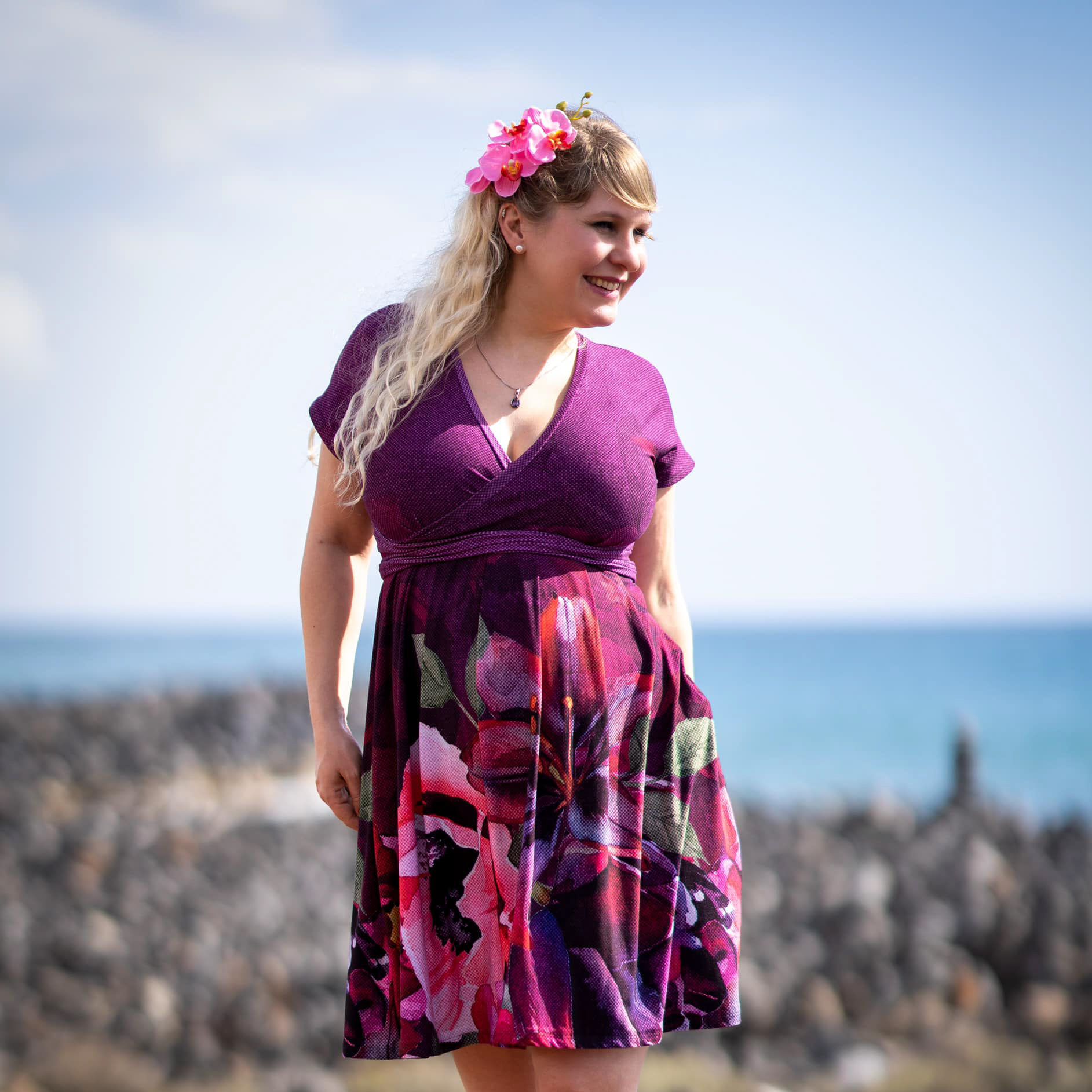 Hera ist elegantes und trotzdem bequemes Sommerkleid in zwei Varianten: mit einem engen Rock und einem schwingenden Faltenrock. Das Oberteil formt mit kleinen Falten und Abnähern ein wunderschönes Dekolleté. Das Oberteil endet unter der Brust und wird mit einem eingenähten Bindegürtel nochmal in seiner Form unterstrichen. Mit dem kostenlosen Ärmel Add on ist Hera auch in der kälteren Jahreszeit die perfekte Begleiterin.