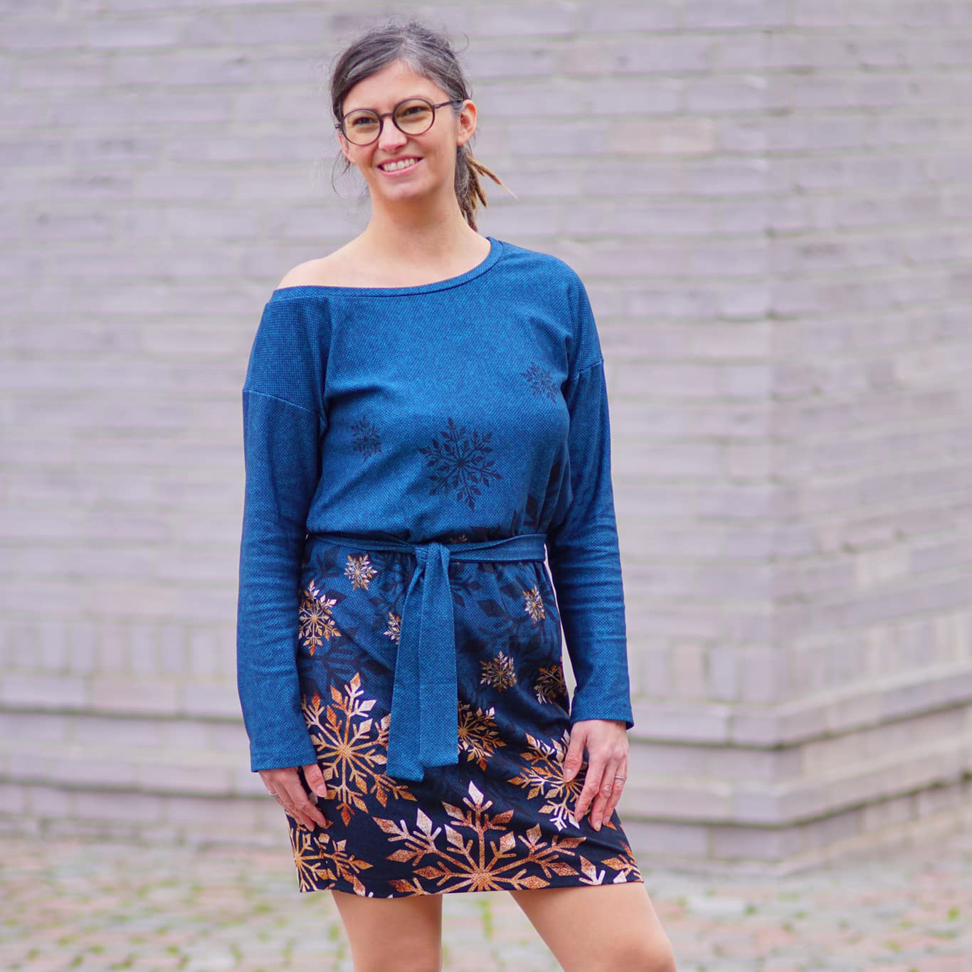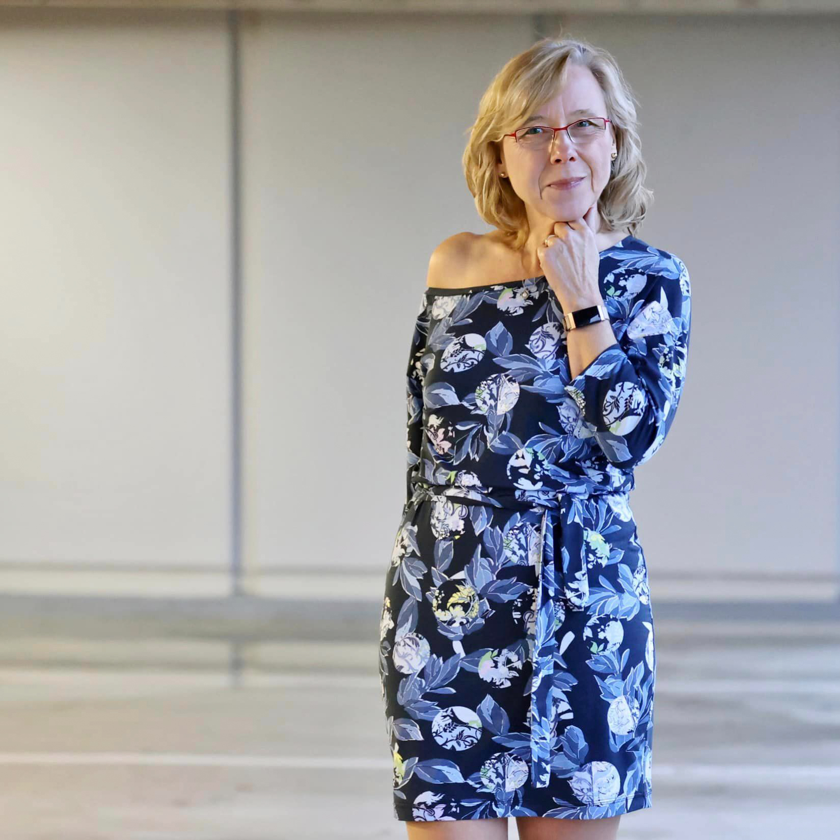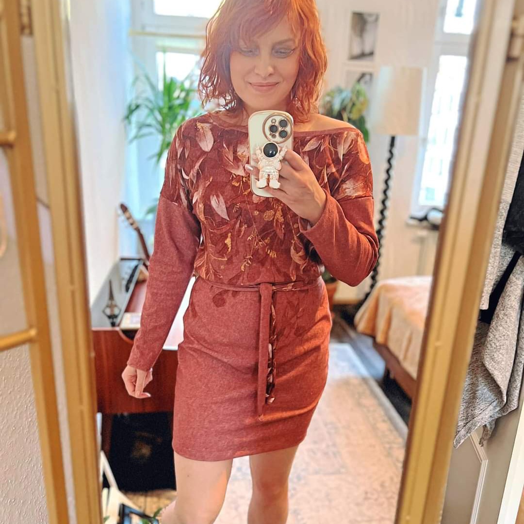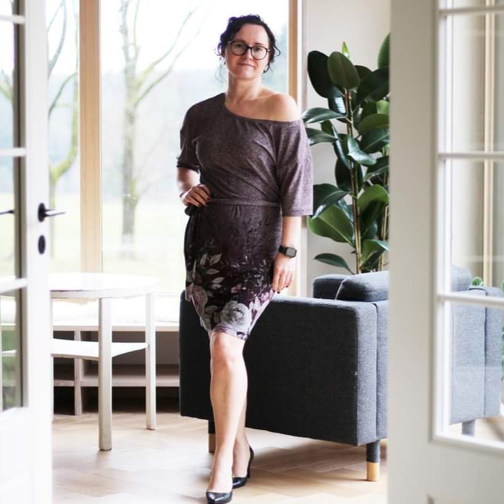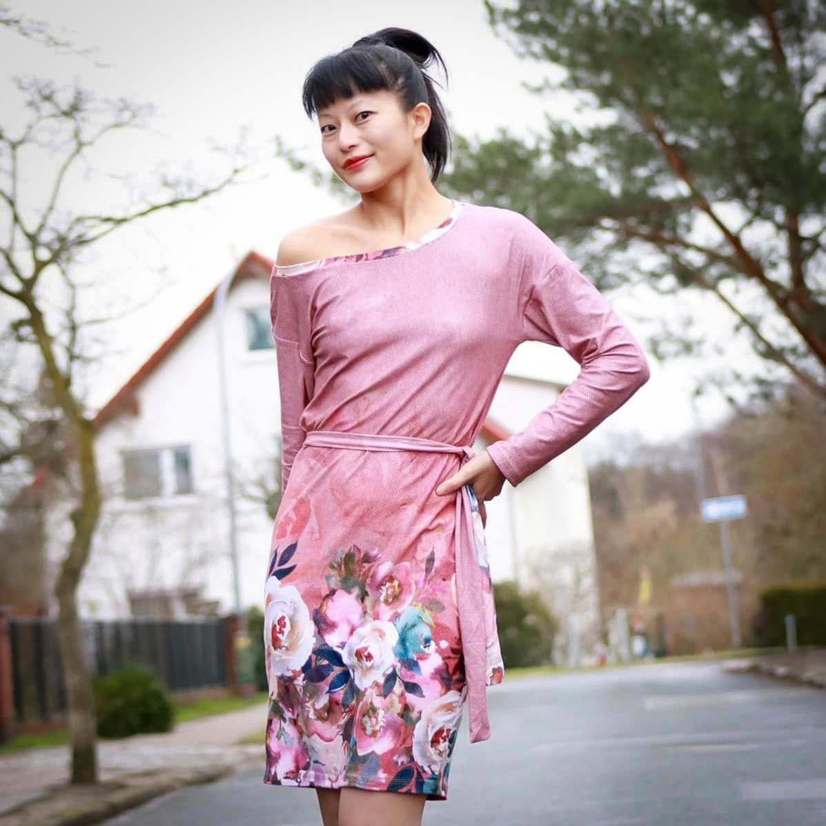 “Pluto” is a quickly sewn, comfortable dress that can be worn in the warm and cold seasons. The special extra is the asymmetry, the dress can be worn off the shoulder on one side. You also have the choice between long and 3/4 sleeves.