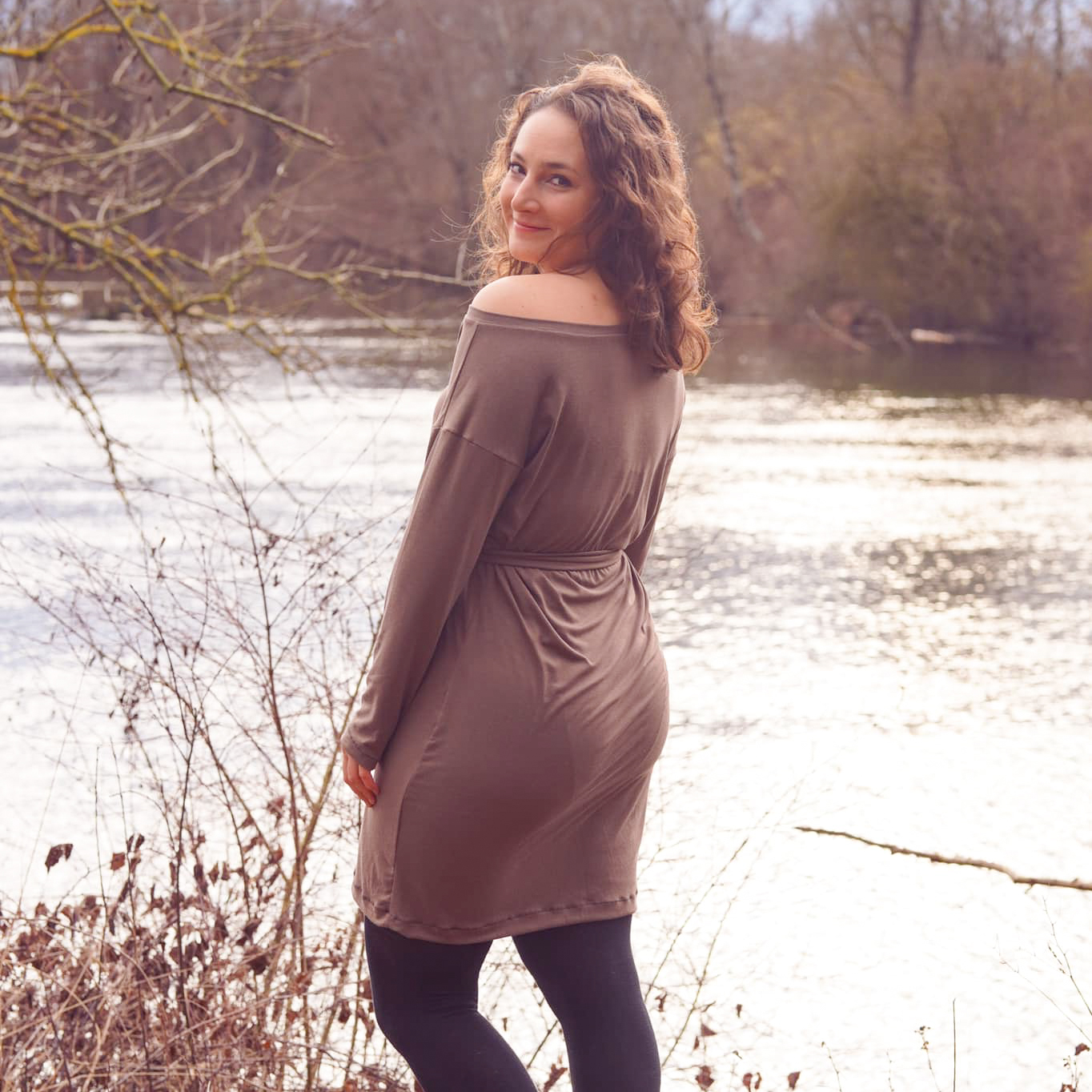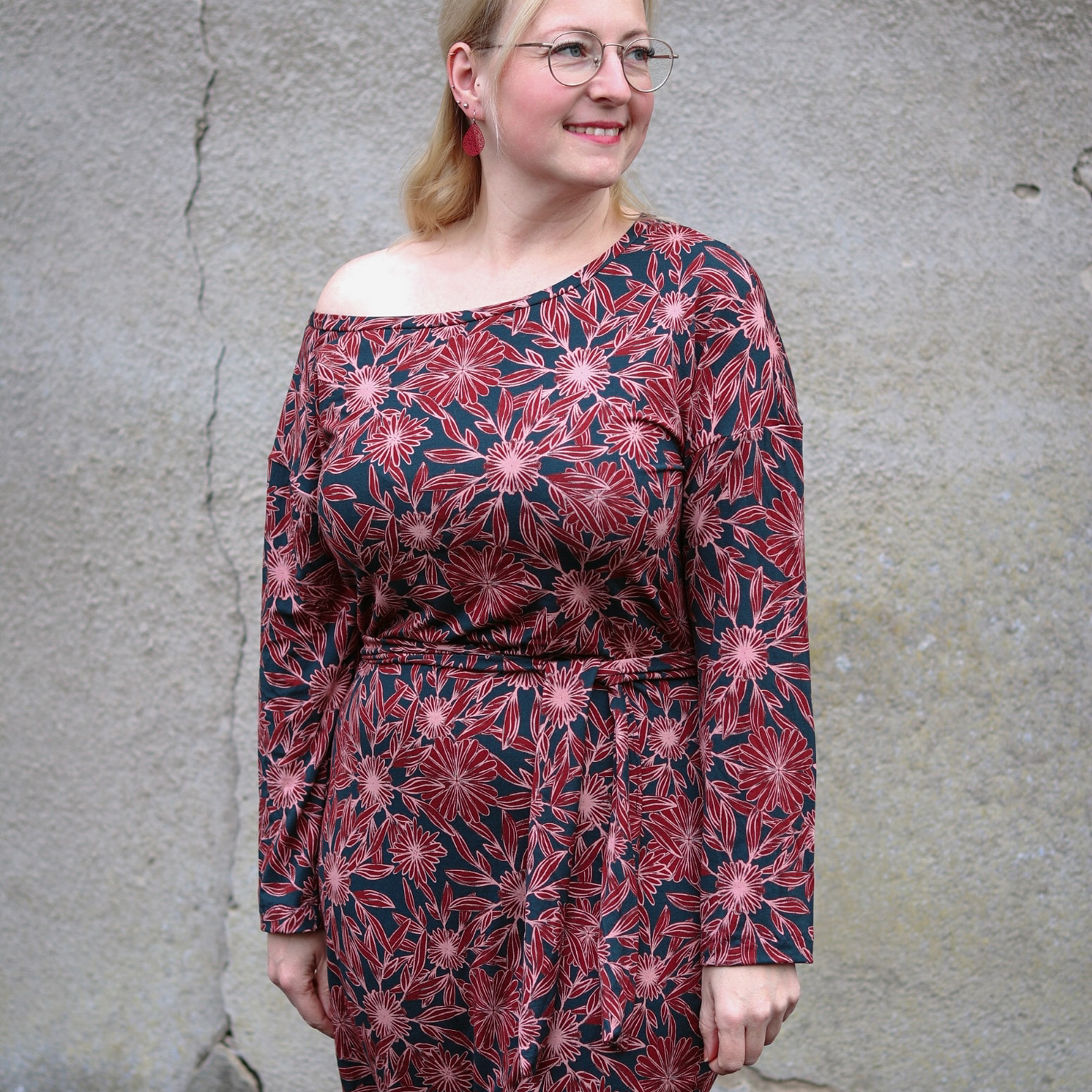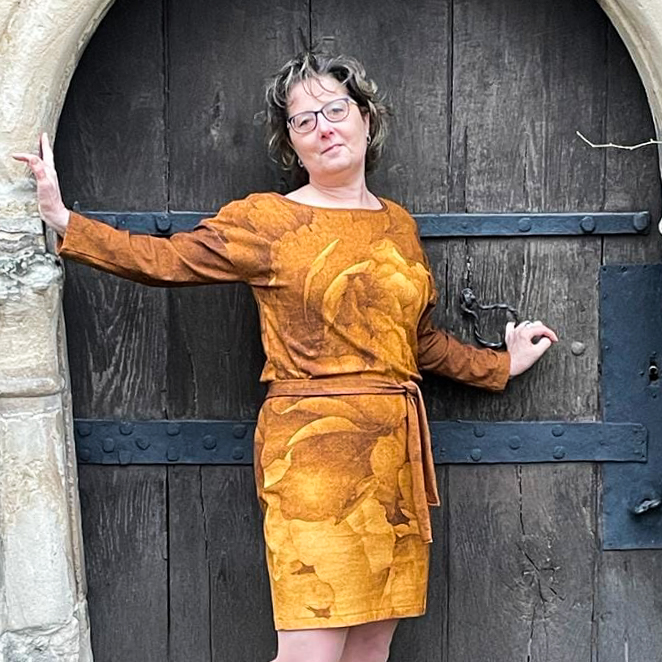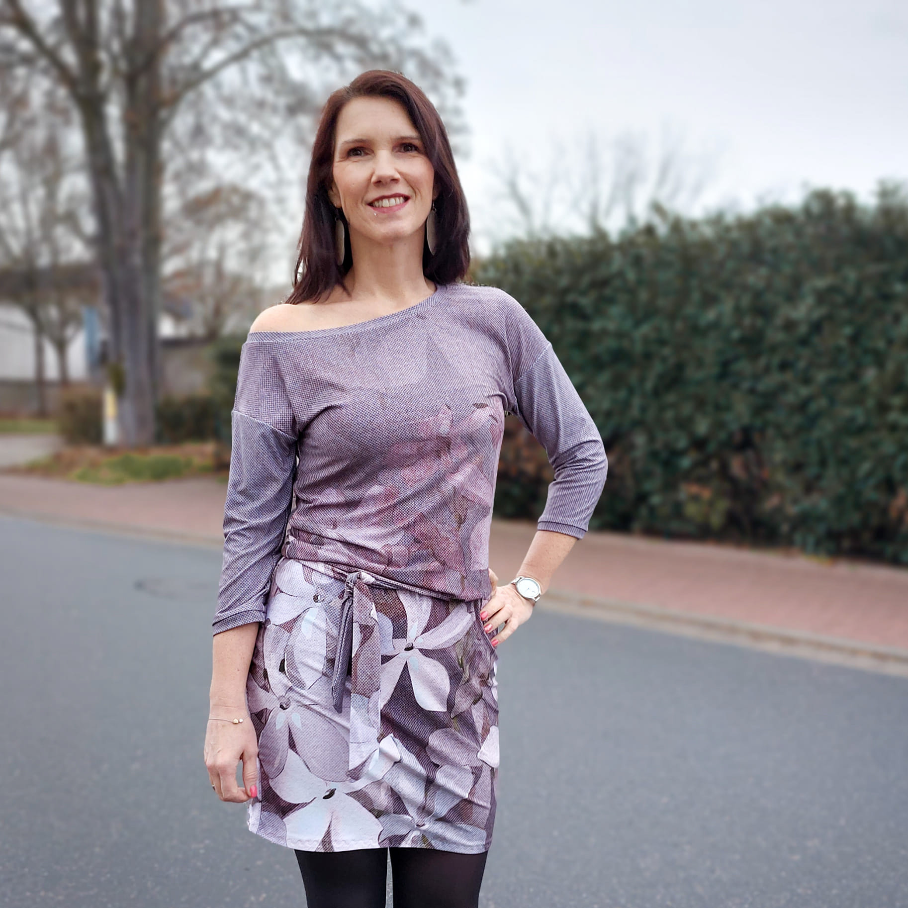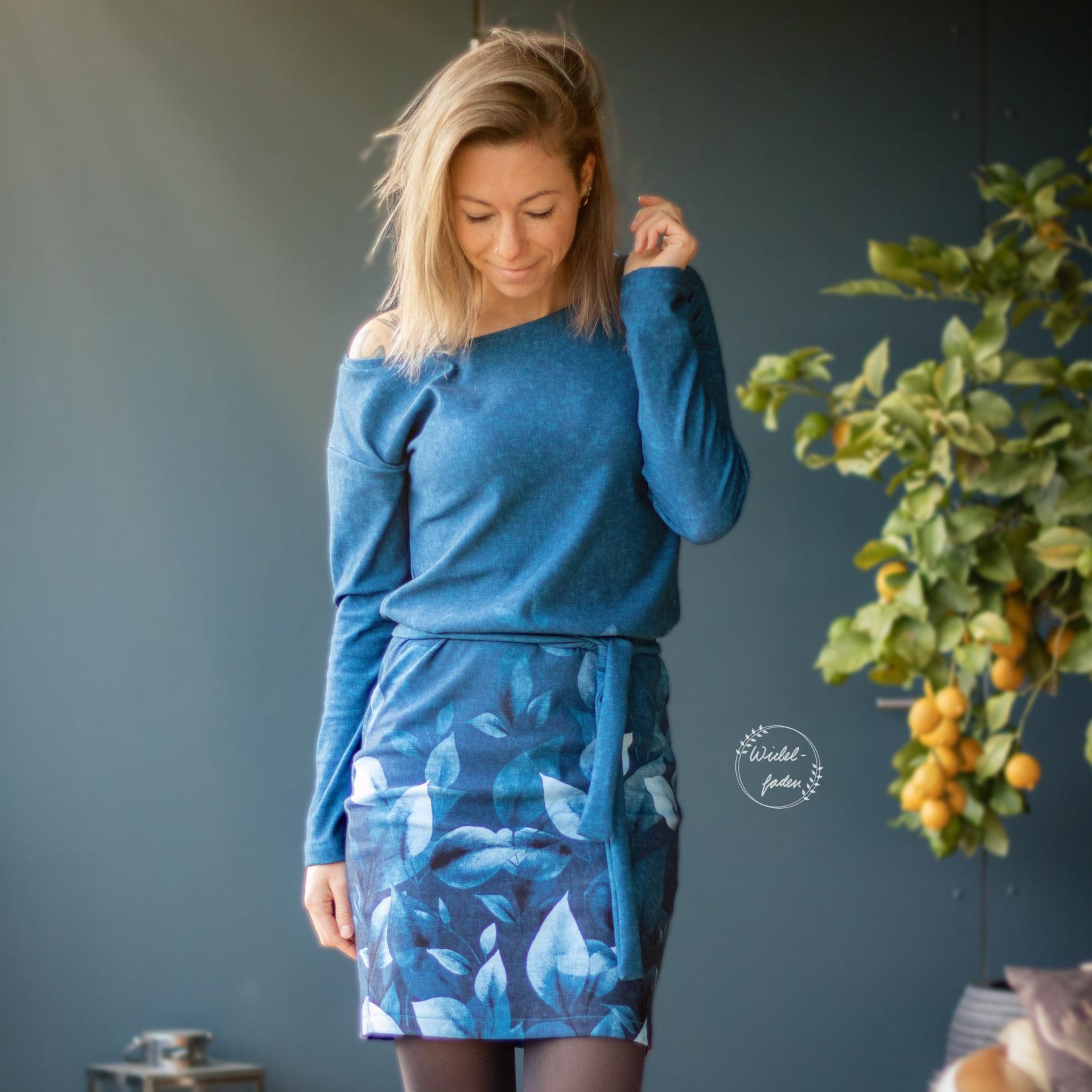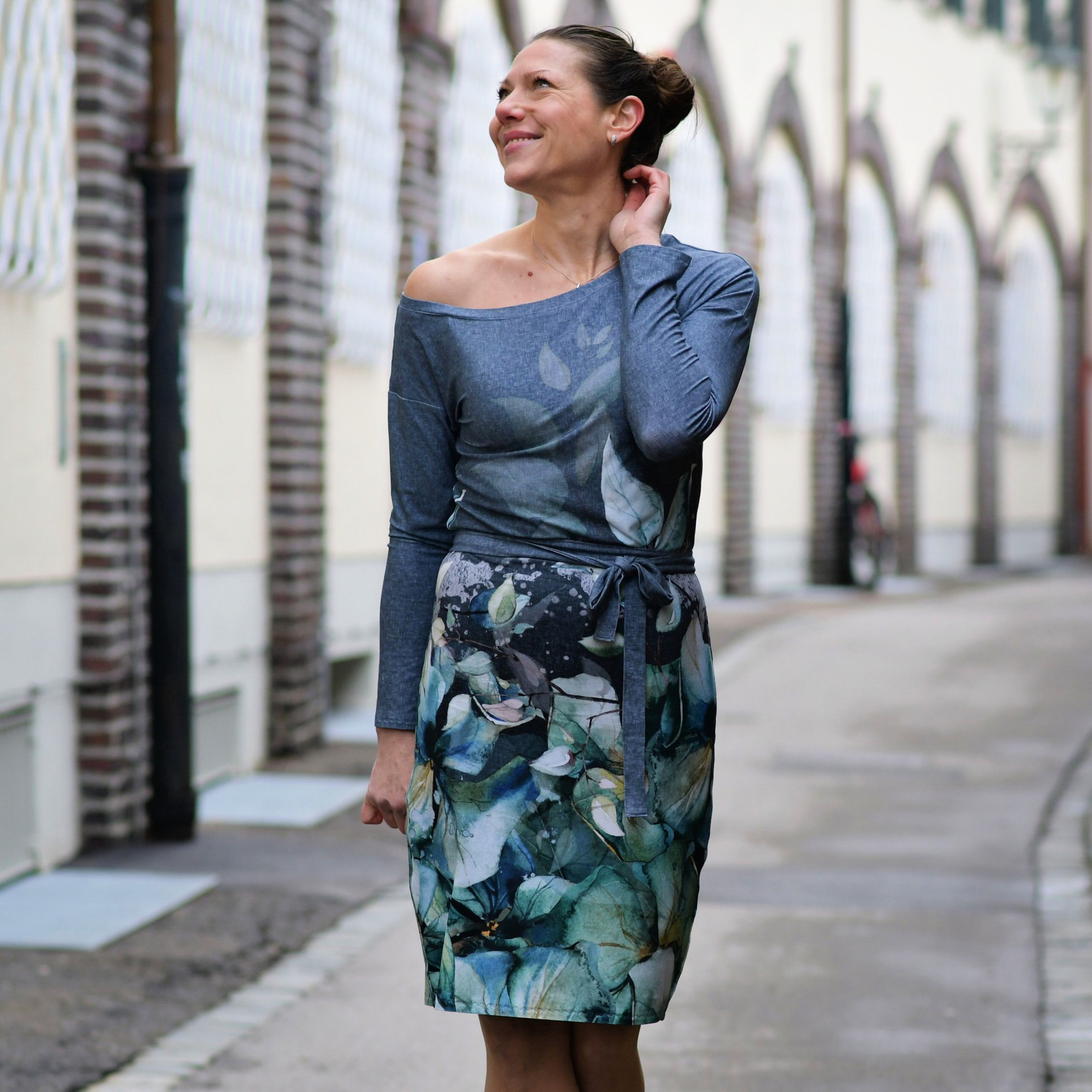 “Pluto” is a quickly sewn, comfortable dress that can be worn in the warm and cold seasons. The special extra is the asymmetry, the dress can be worn off the shoulder on one side. You also have the choice between long and 3/4 sleeves.