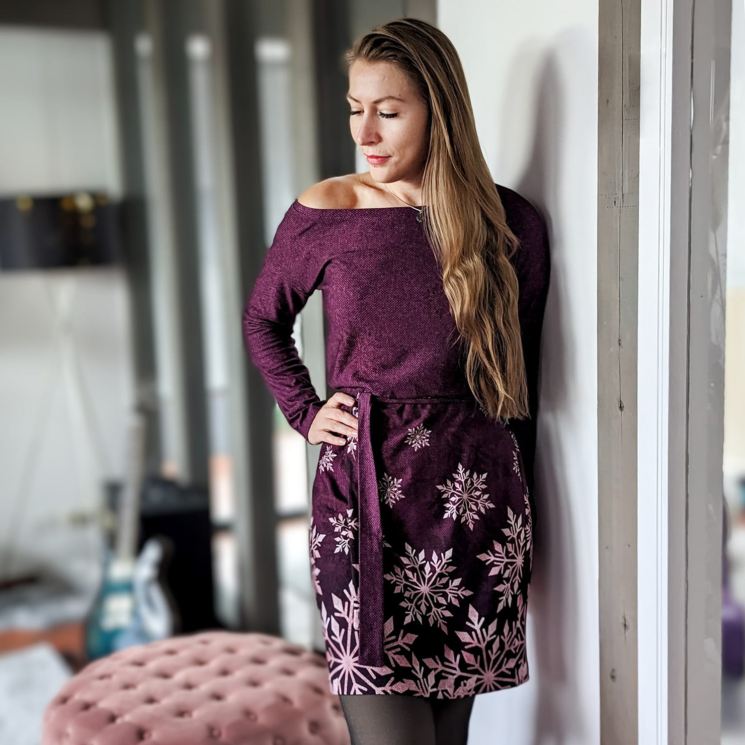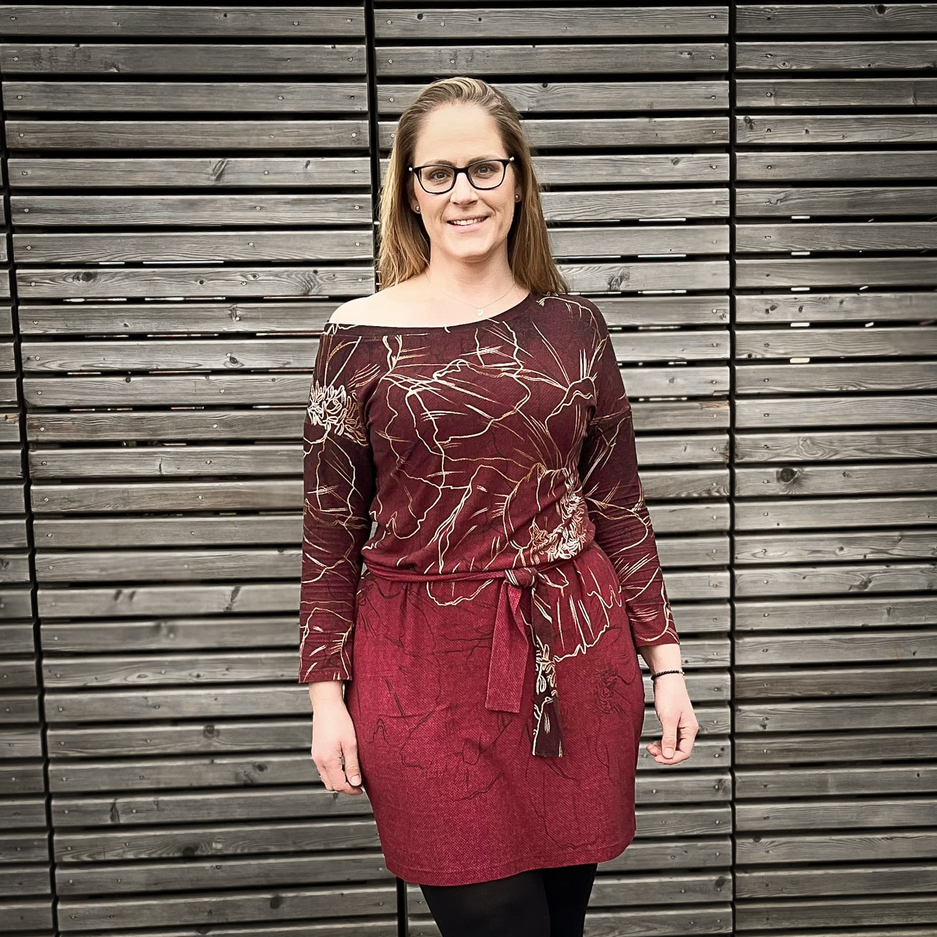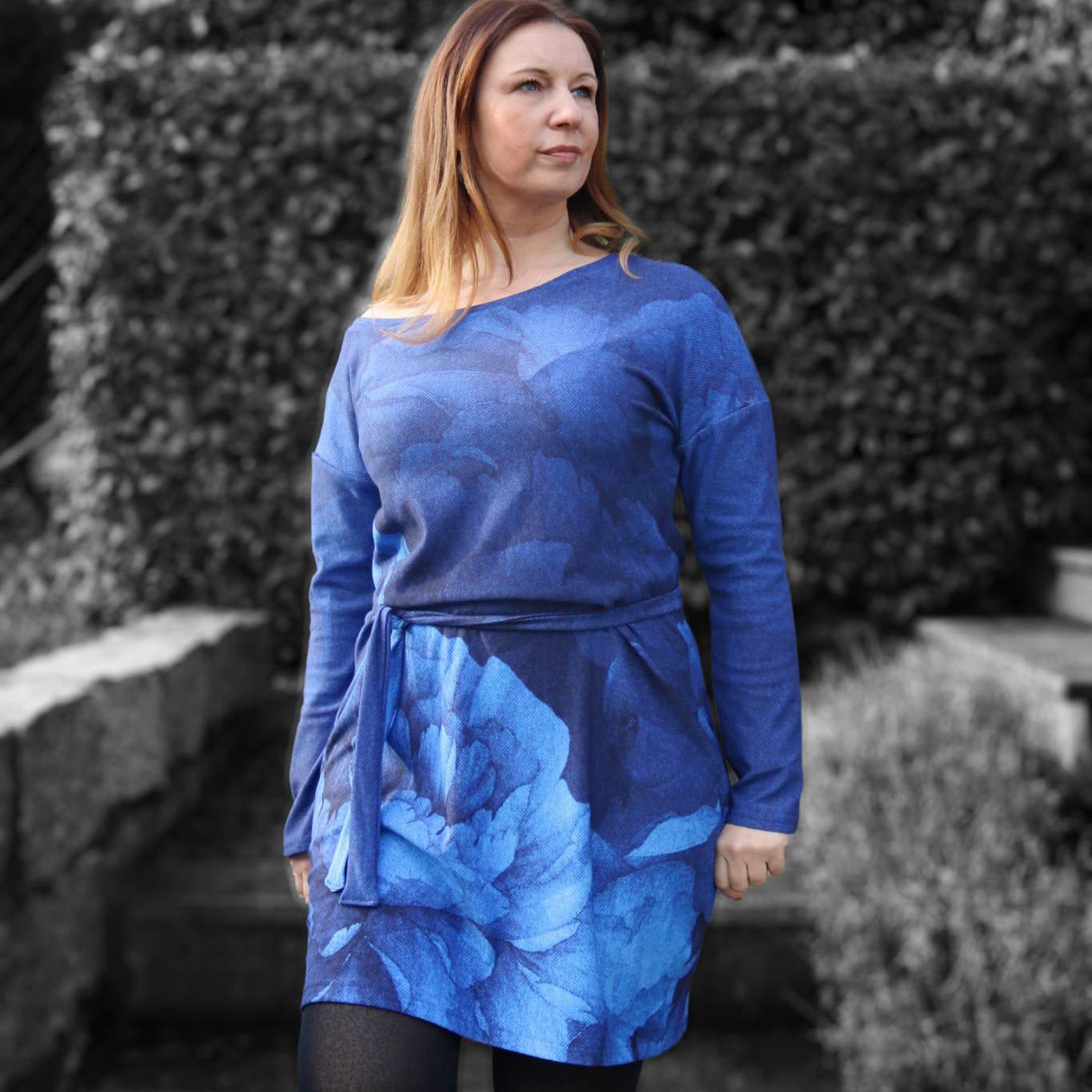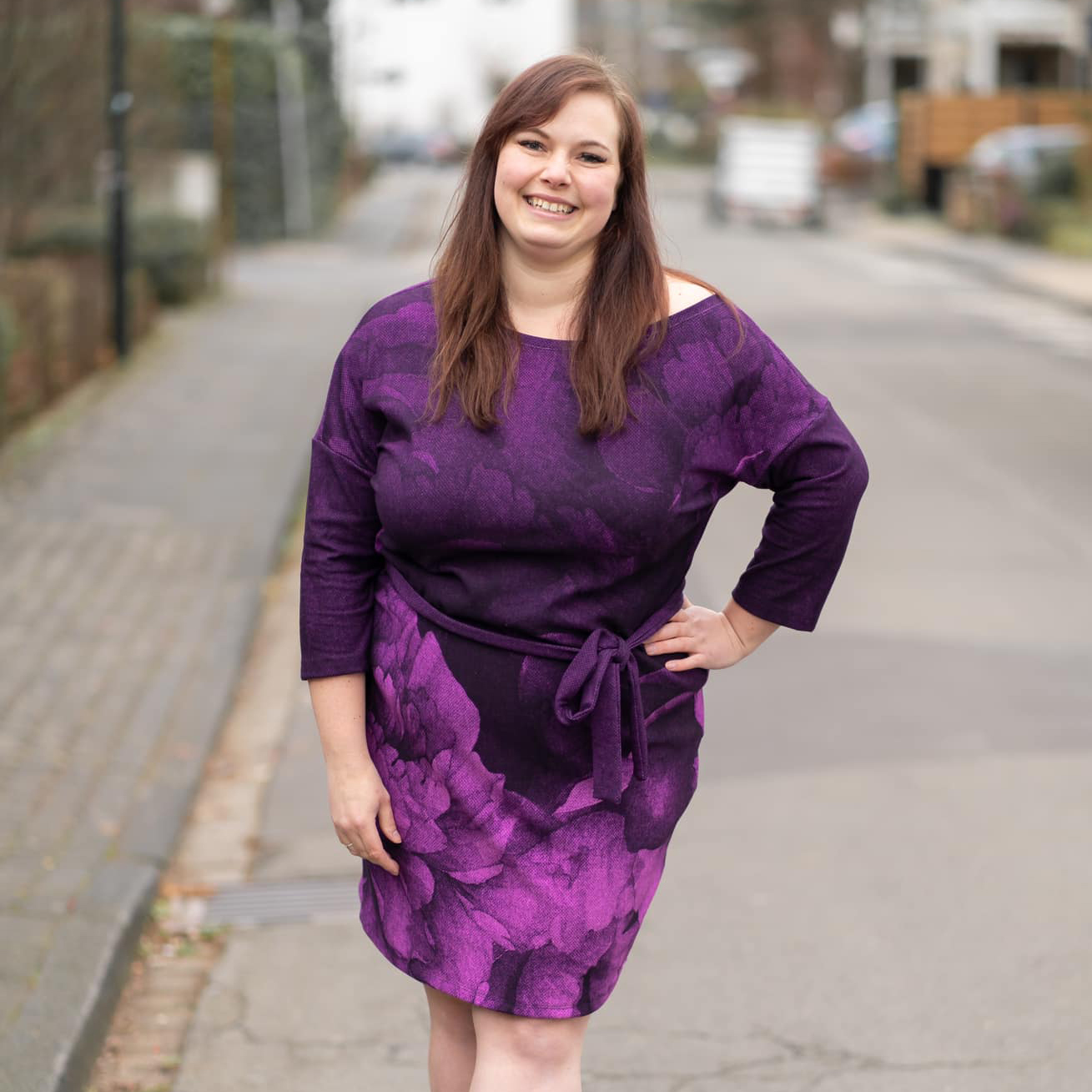 “Pluto” is a quickly sewn, comfortable dress that can be worn in the warm and cold seasons. The special extra is the asymmetry, the dress can be worn off the shoulder on one side. You also have the choice between long and 3/4 sleeves.