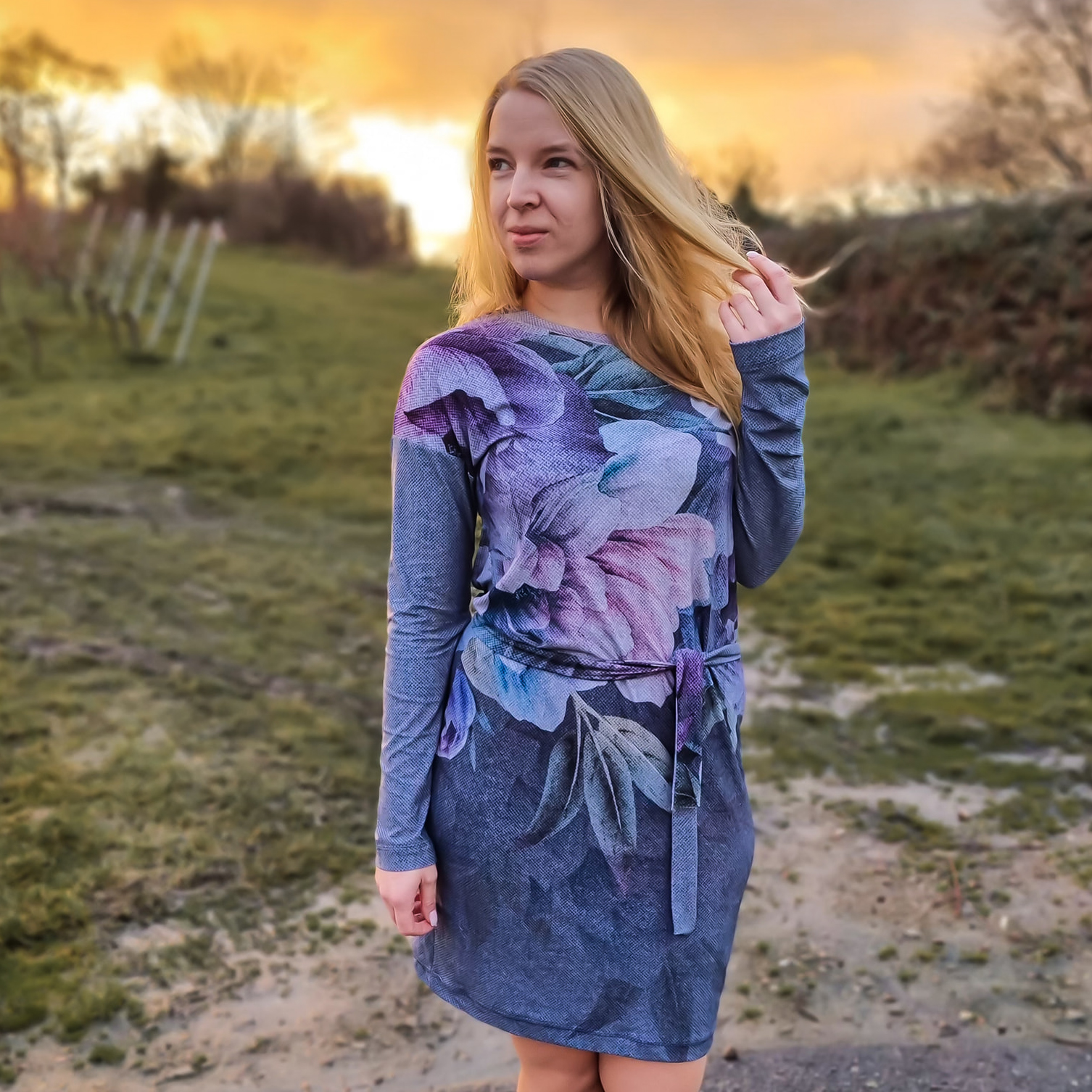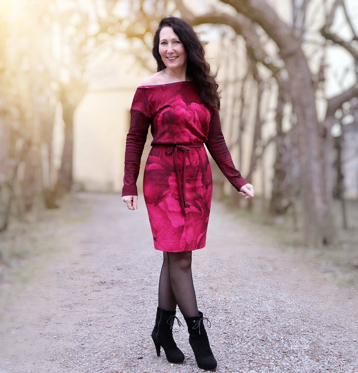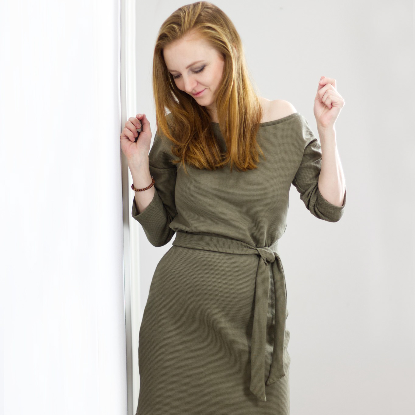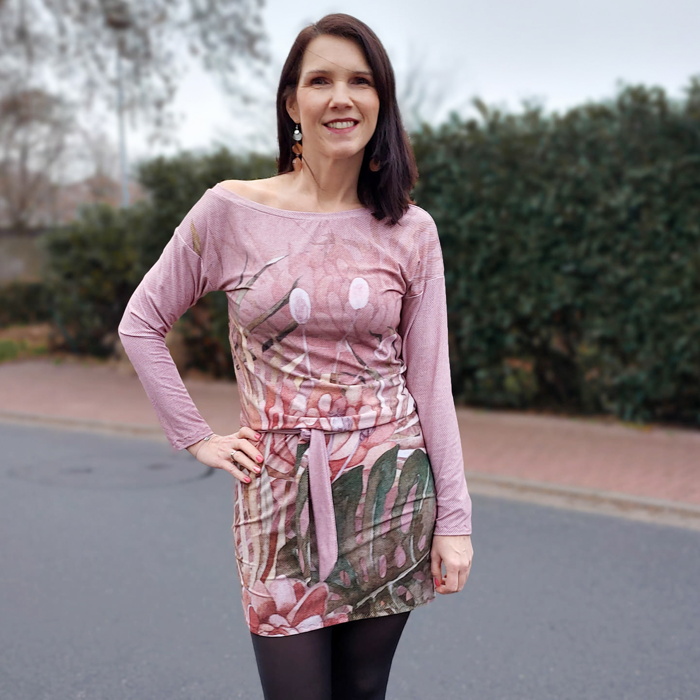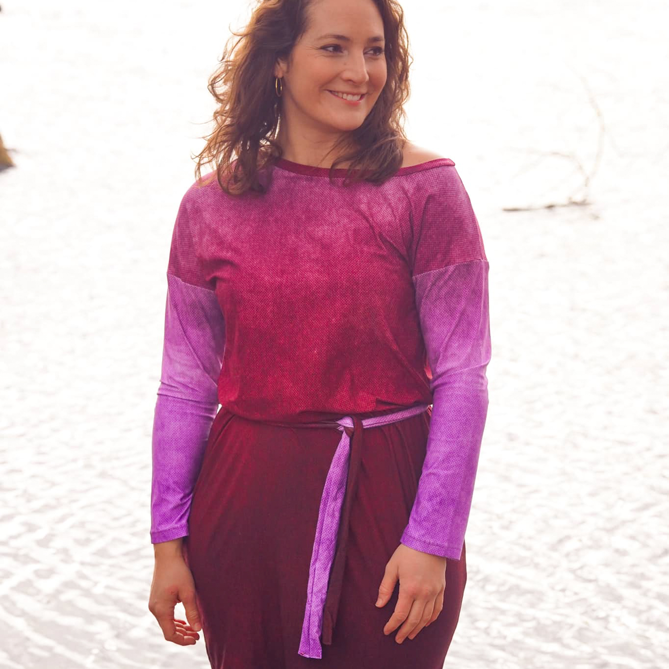 “Pluto” is a quickly sewn, comfortable dress that can be worn in the warm and cold seasons. The special extra is the asymmetry, the dress can be worn off the shoulder on one side. You also have the choice between long and 3/4 sleeves.