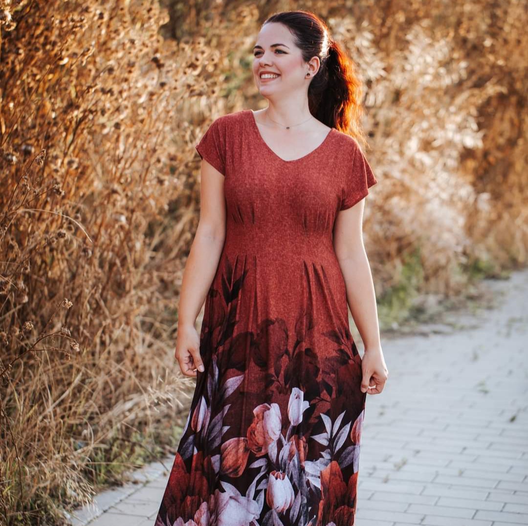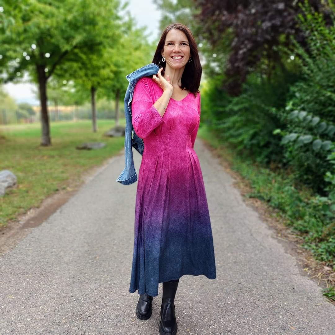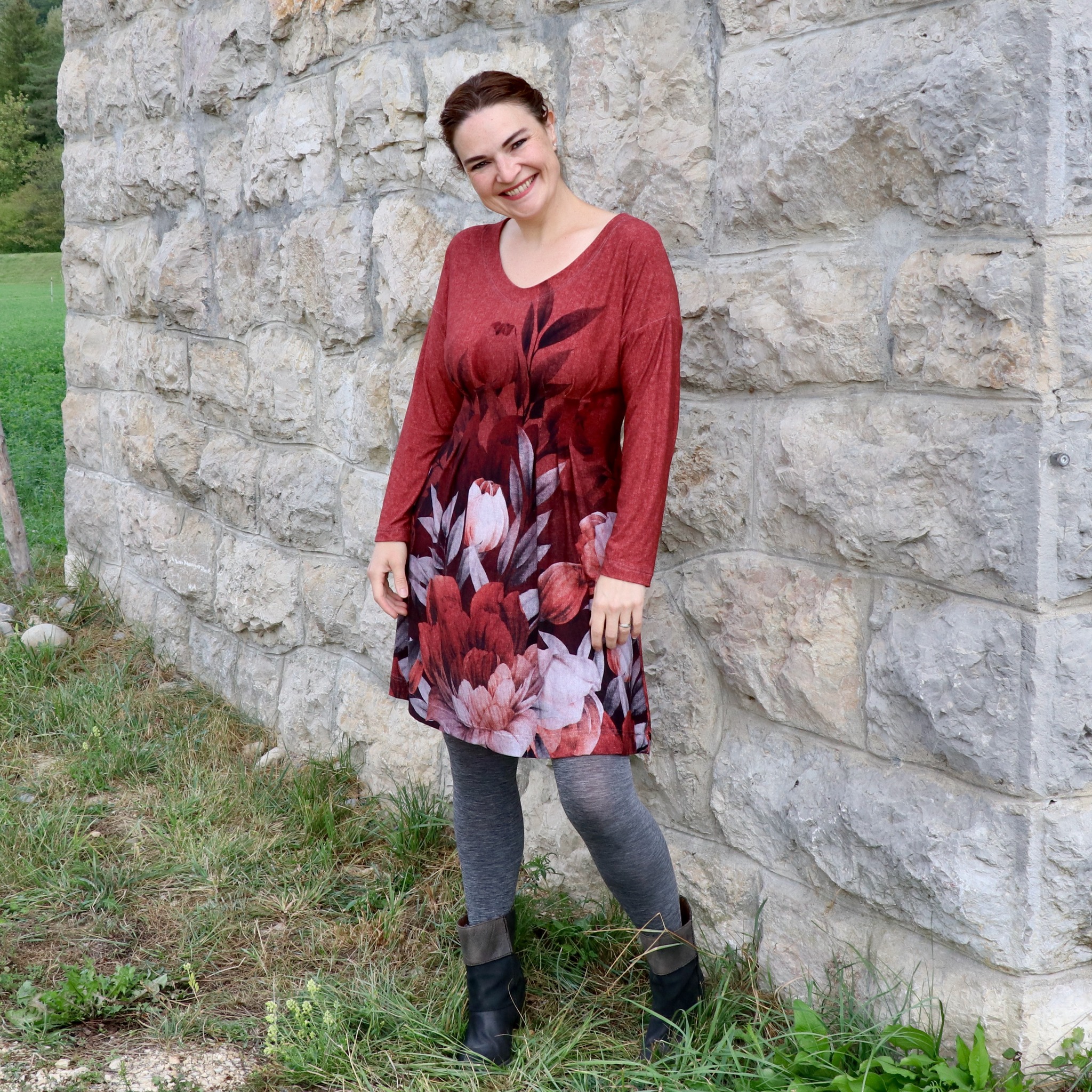 Rhea is an easy-to-sew, well-fitting dress in two lengths and two sleeve options. Thanks to the small folds, Rhea is an absolute figure miracle and is still sewn up very quickly.