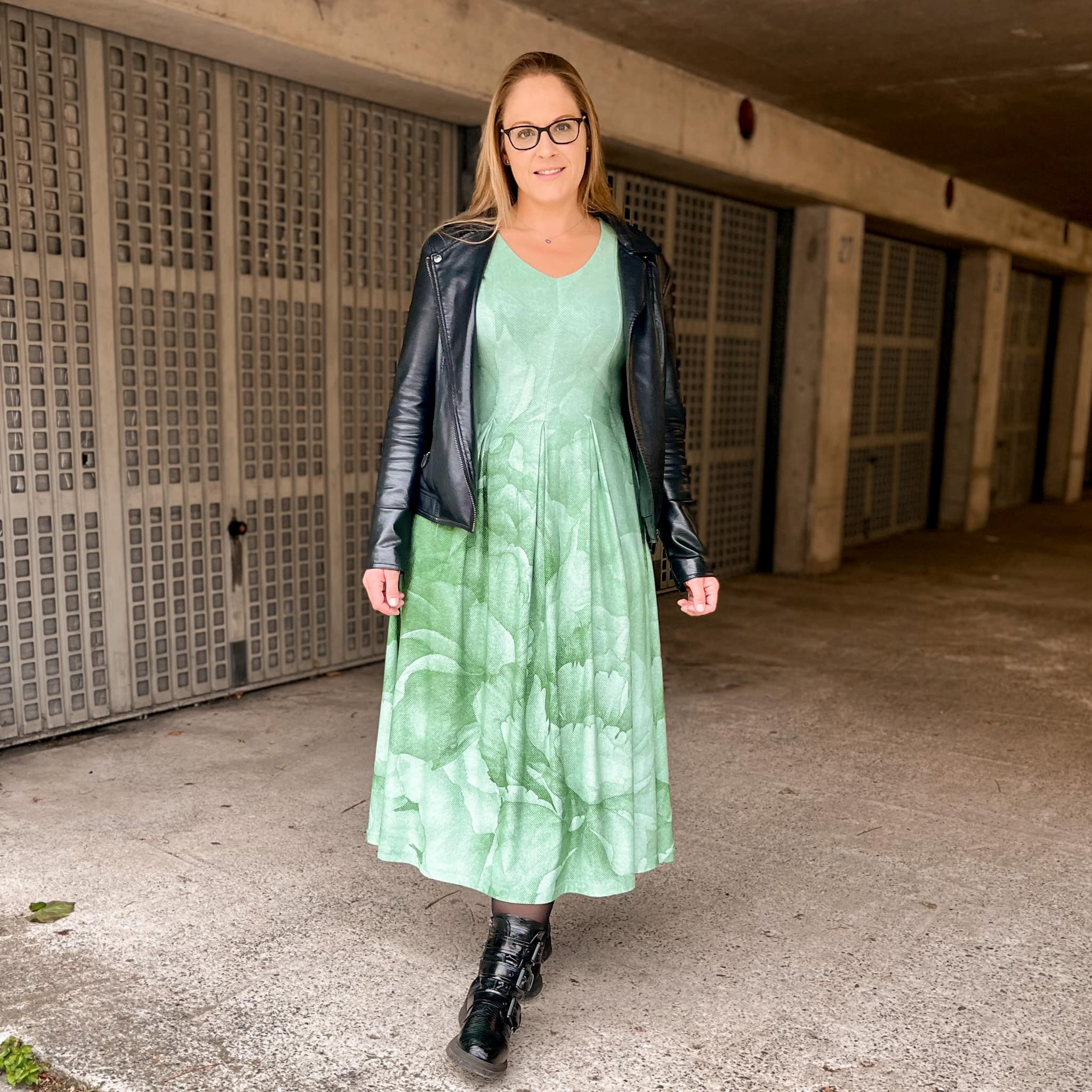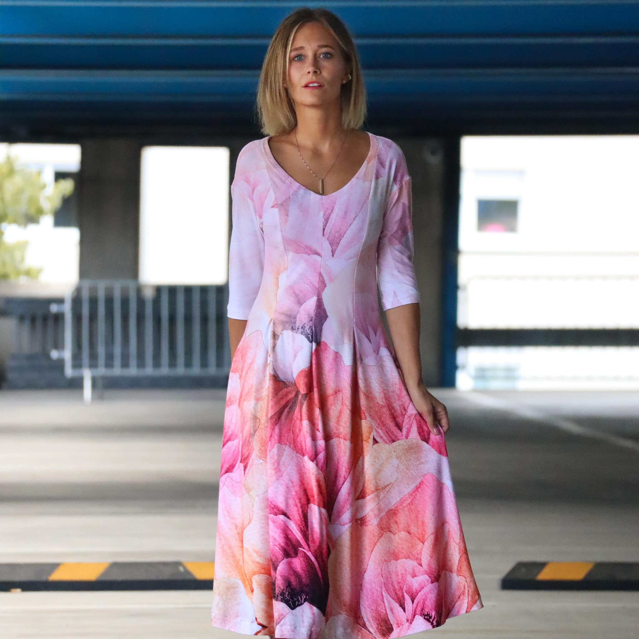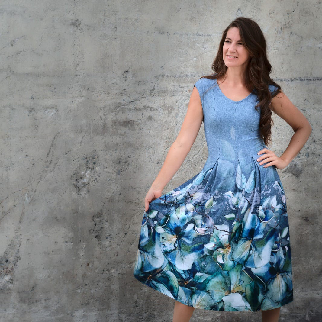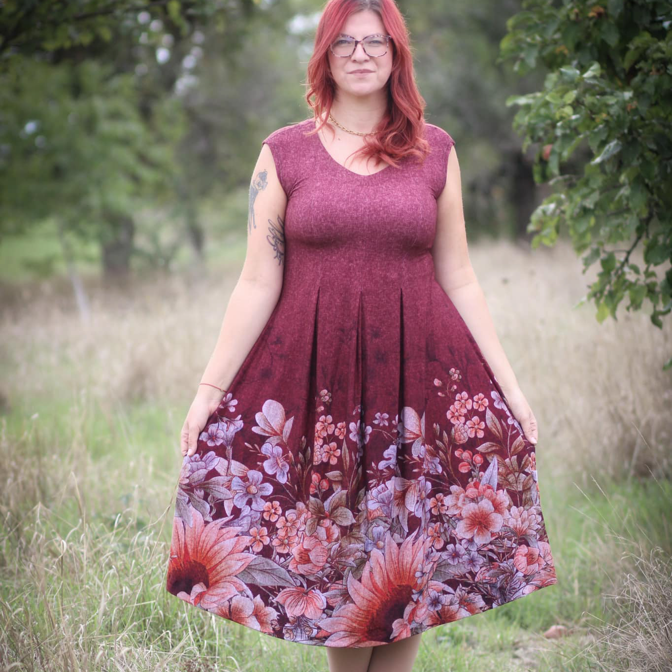 Saturn ist ein sportlich-elegantes Kleid mit jeweils drei tiefen Kellerfalten vorne und hinten. Mit Prinzessnähten und ohne Unterteilung zum Rockteil kommen Bordürenstoffe perfekt zur Geltung. Ihr habt neben 2 Längen auch 2 Ärmelvarianten zur Auswahl: Überschnittene kurze Ärmel und angesetzte lange Ärmel.
