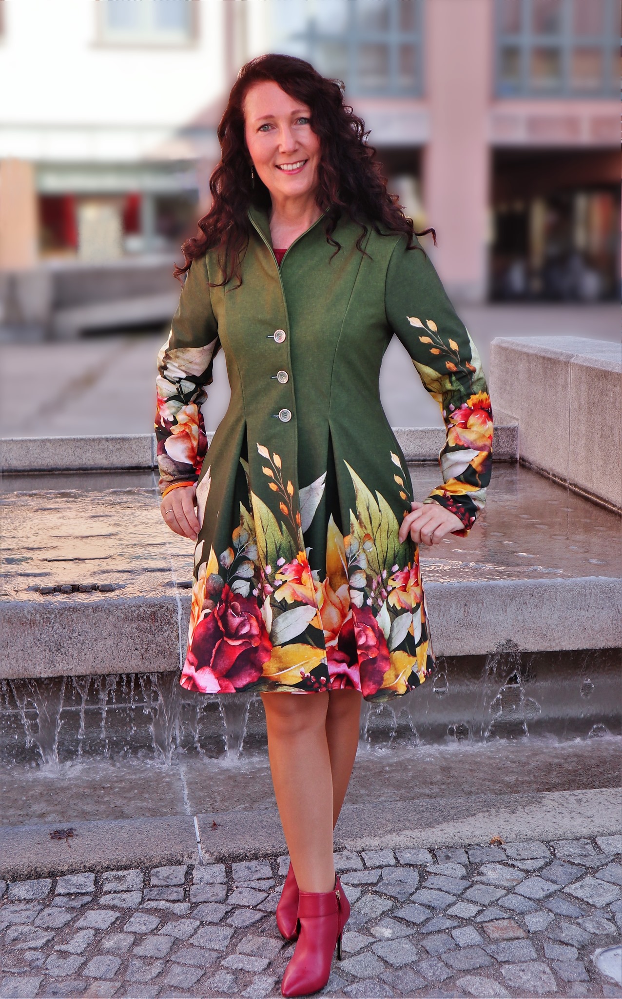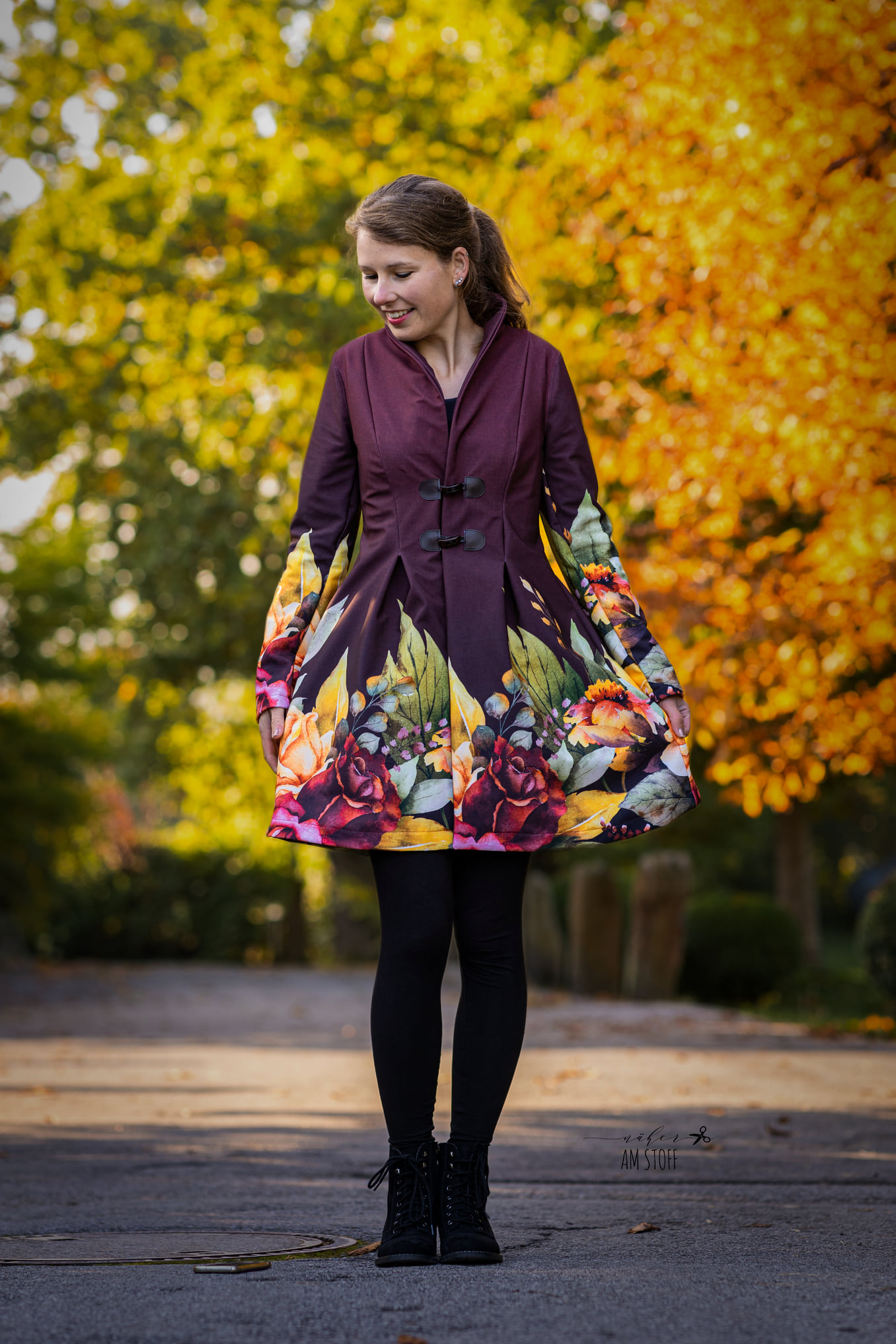 „Hyperion“ ist ein eleganter Mantel mit drei tiefen Kellerfalten hinten und zwei vorn. Das Oberteil ist mit Prinzessnähten und ohne Unterteilung zum Rockteil, wodurch Bordürenstoffe perfekt zur Geltung kommen. Du kannst Hyperion ungefüttert oder gefüttert nähen.