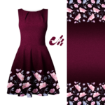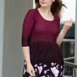 Die Bordüre verläuft rechts und links und ist ca. 35 cm breit. Der Fadenlauf ist somit quer zum Muster, was jedoch kein Problem darstellt, da der Stoff in beide Richtungen gleich elastisch ist und auch in beide Richtungen gleich schön fällt.