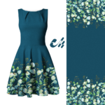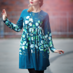 Die Bordüre verläuft rechts und links und ist ca. 30 cm breit. Der Fadenlauf ist somit quer zum Muster, was jedoch kein Problem darstellt, da der Stoff in beide Richtungen gleich elastisch ist und auch in beide Richtungen gleich schön fällt.