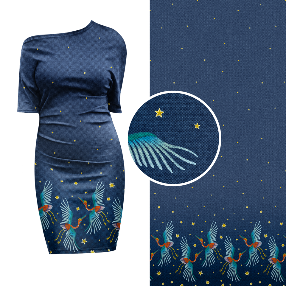 Kraniche blau I Modal French Terry