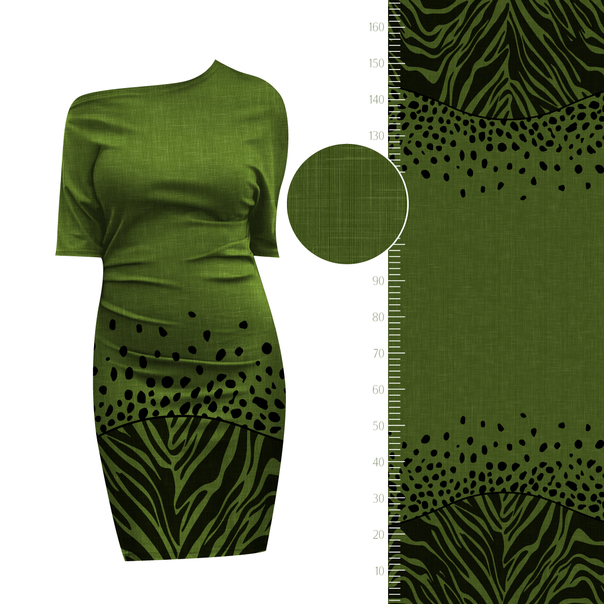 Die Bordüre ist doppelseitig und bietet genug Raum für kreative Kleidung. Der Fadenlauf ist quer zum Muster, was jedoch kein Problem darstellt, da der Stoff in beide Richtungen gleich elastisch ist und auch in beide Richtungen gleich schön fällt.