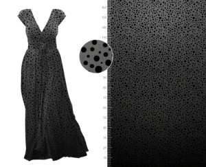 Der Fadenlauf der Bordüre verläuft quer zum Muster. Da der Stoff in beide Richtungen gleich elastisch ist und ebenso schön fällt, lässt er sich problemlos in beide Richtungen verarbeiten.