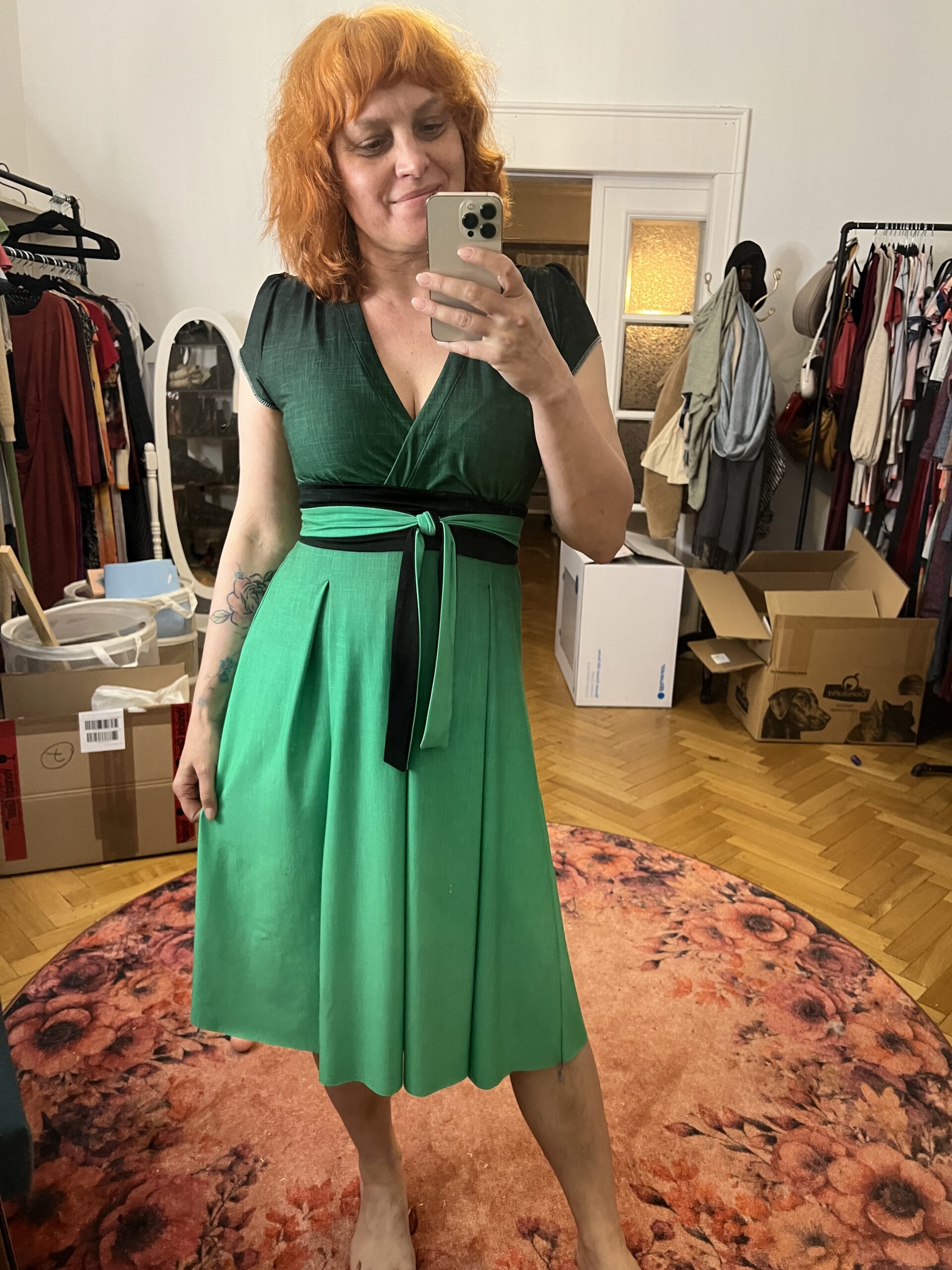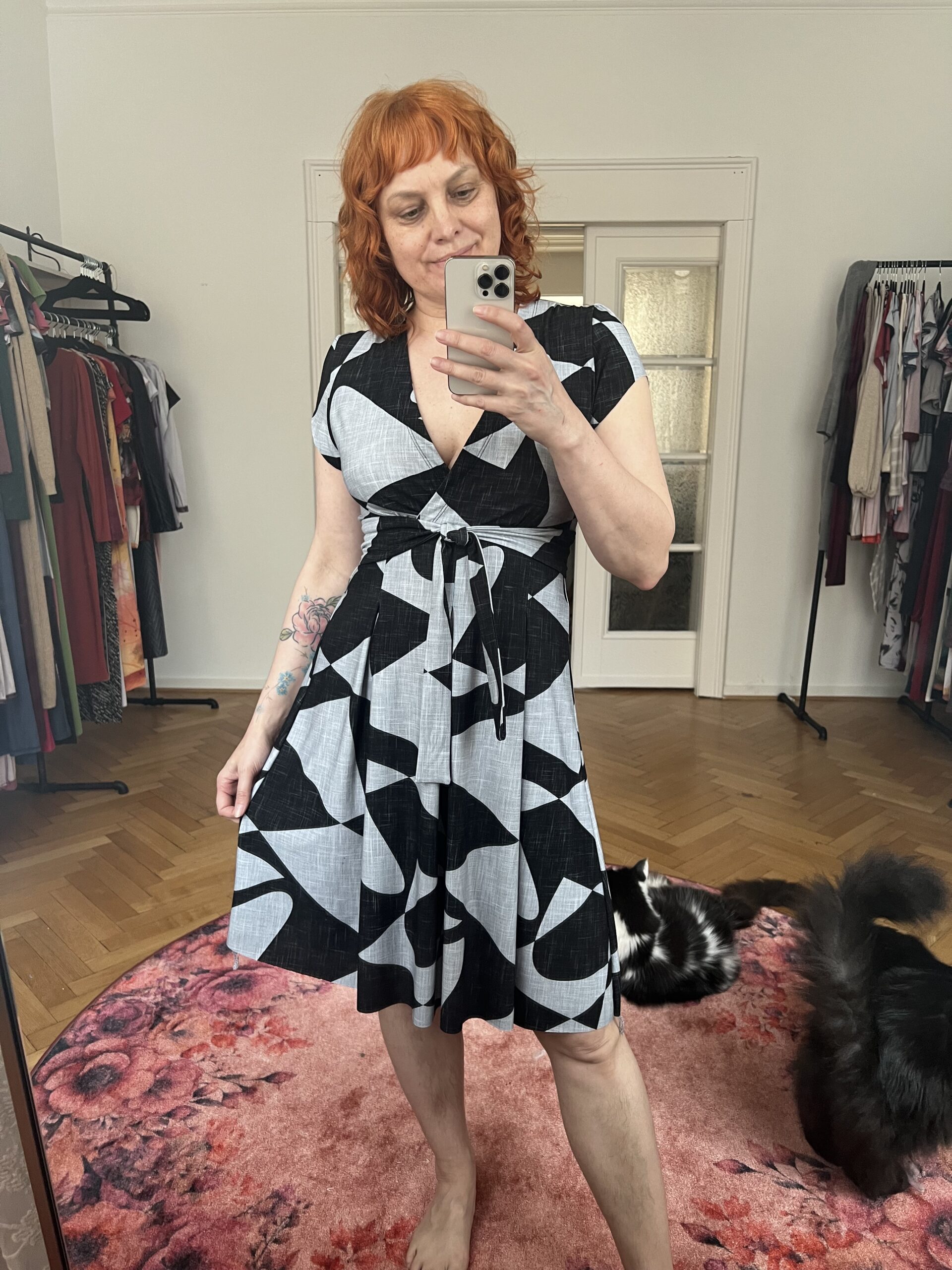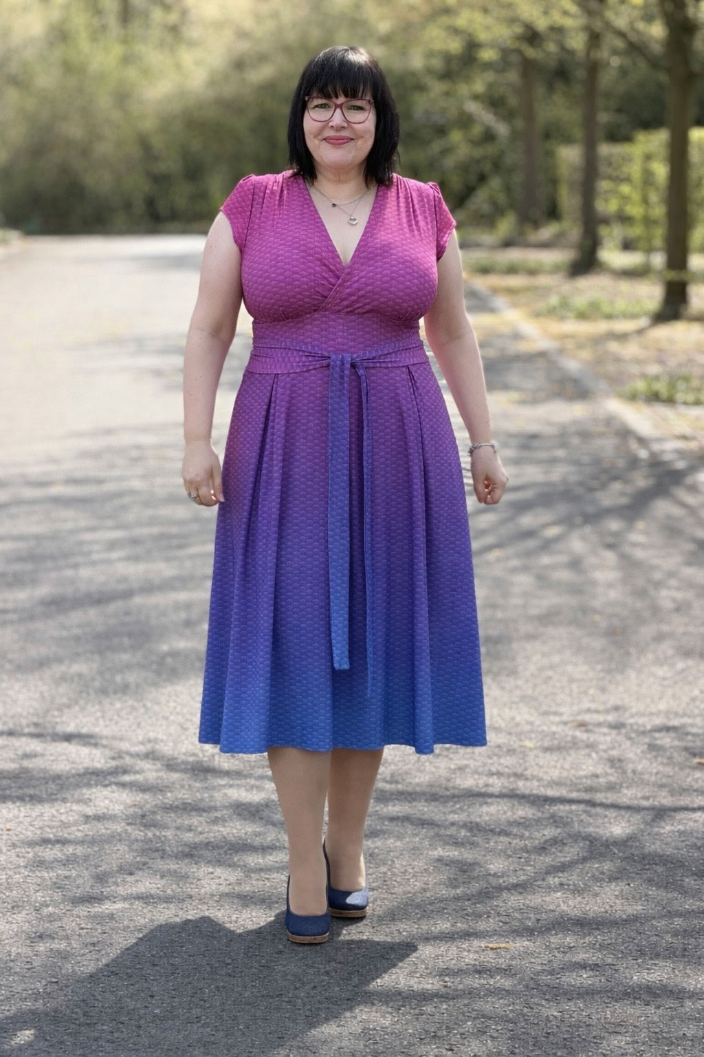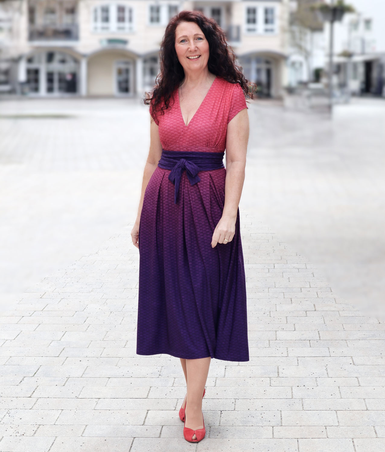 Es kann in normaler oder Maxi-Länge genäht werden und lässt sich optional mit einem Gürtel tragen, um die Taille zusätzlich zu betonen.