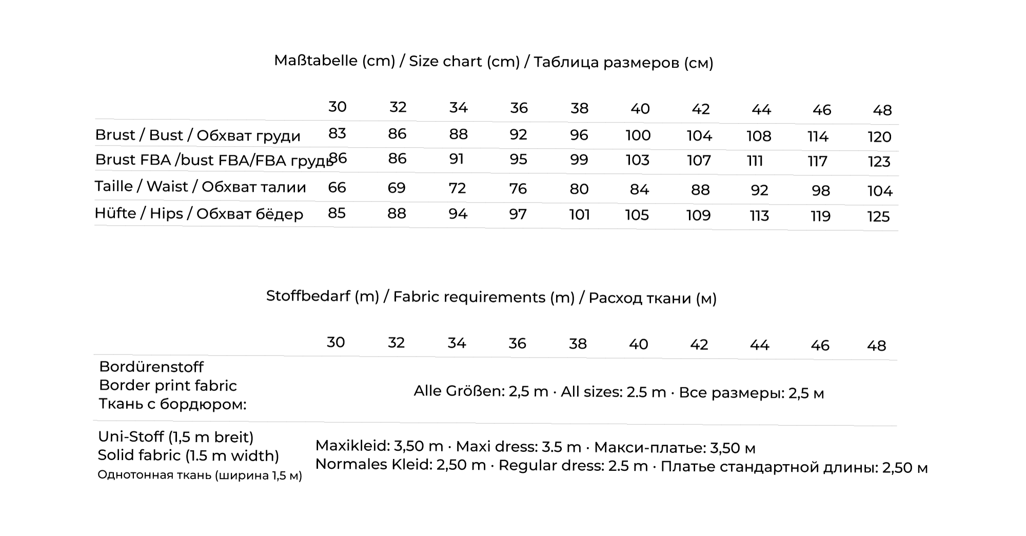 Maßtabelle und Stoffbedarf findest du auf weiteren Produktbildern.