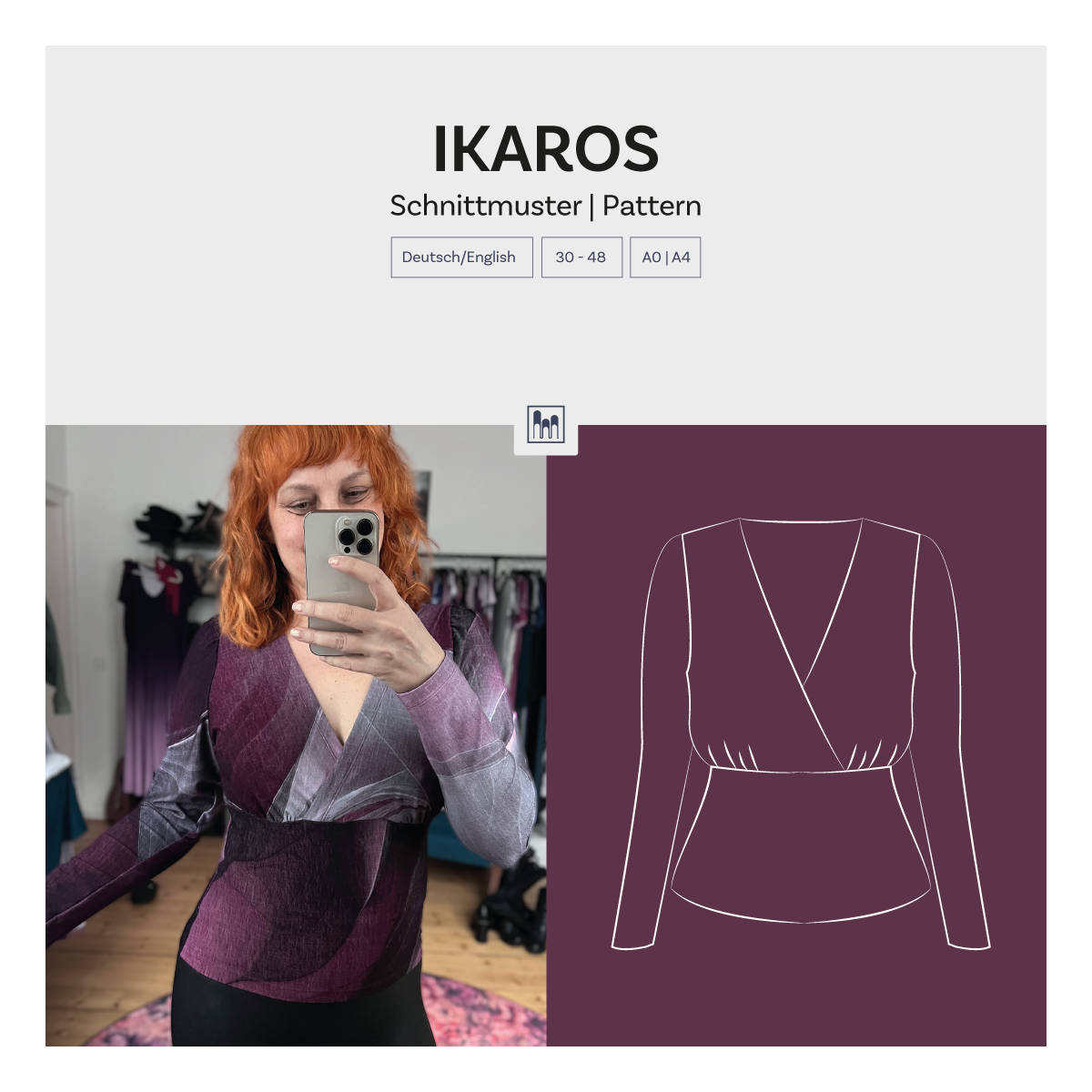 Fitted wrap top with a crossed front and a defined waist. The pattern includes two sleeve options: a smooth, slim sleeve and a gathered sleeve for added volume.